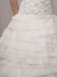 フラワーモチーフの刺繍やビーズもあしらわれ、