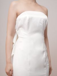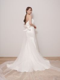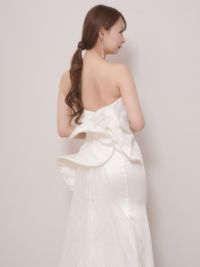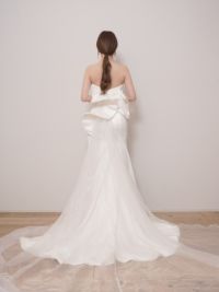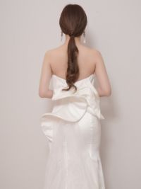 バックスタイルはアシンメトリーなリボンが個性的なデザイン。