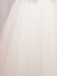 スカート部分はドット柄のチュールがふんわりと広がり、