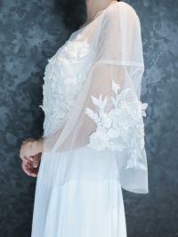 ボレロには立体的なフラワーモチーフのレースがあしらわれています。