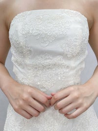 アイボリーの総レースAラインドレス。