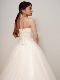 スカートはソフトチュールがふんわりと広がります。