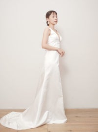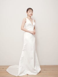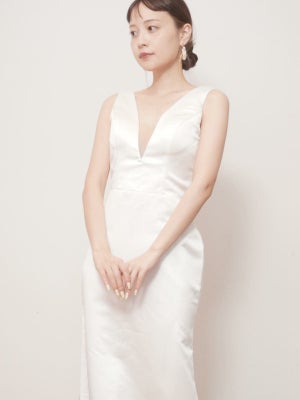 艶のあるサテン素材が上品なマーメイドラインドレス。