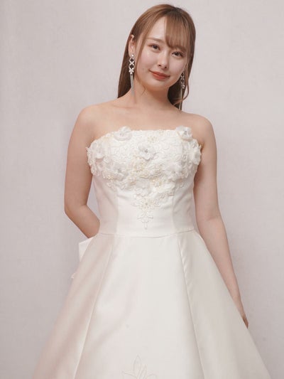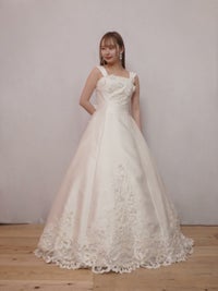 スカートは裾に向かってカットレースが広がり、美しいデザイン。