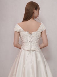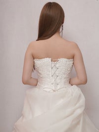スカートは、オーガンジーの付属スカートを着用してふんわりとご着用いただくことも、