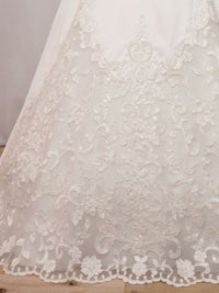 裾に向かって広がる透け感のあるカットレースもポイントです。