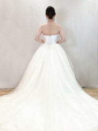 スカート部分はボリュームのあるチュール素材がふんわりと広がります。