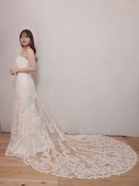 トレーンは長く透け感の美しいデザインです。