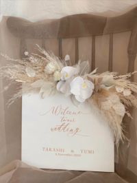 今っぽい花材をふんだんに使用したウェルカムボード。
